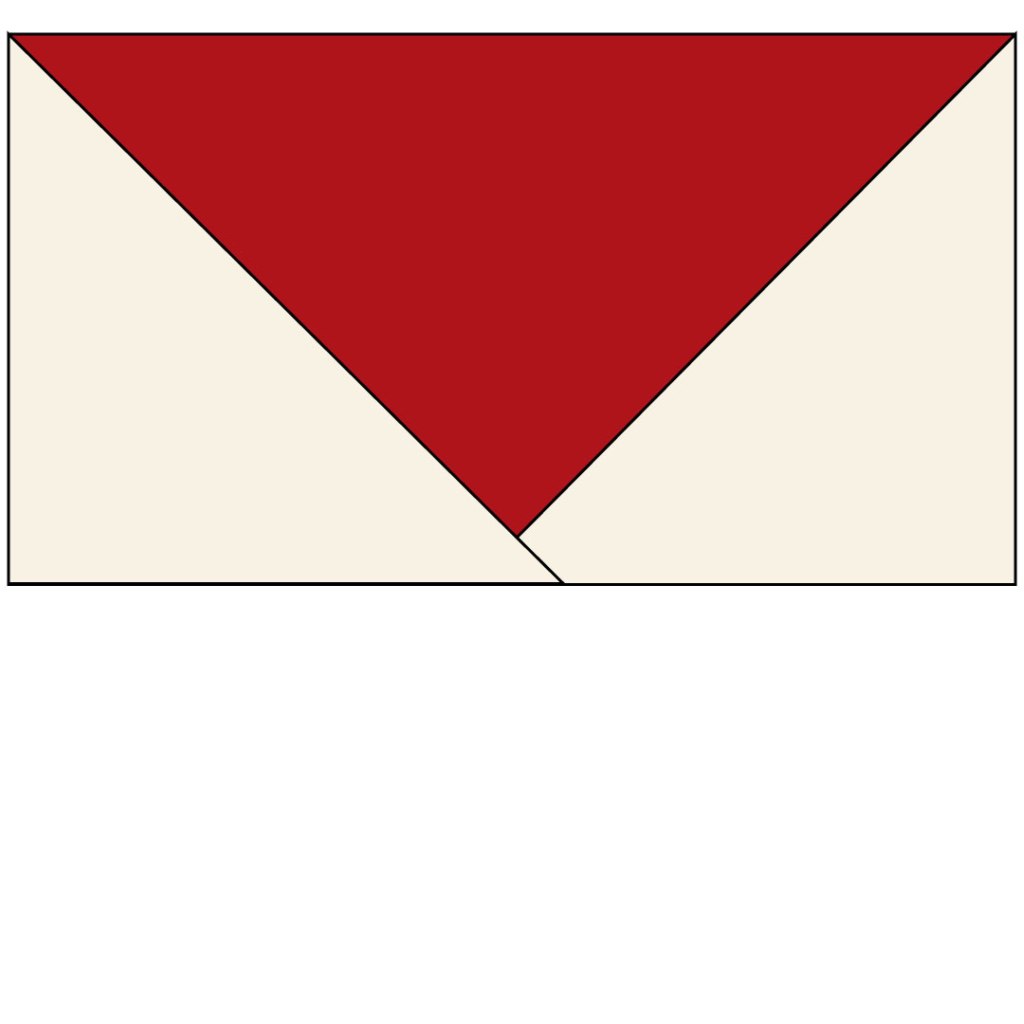 6 – Lay Out: Lay the remaining background squares, right sides together on the opposite end of the rectangle. The marked diagonal line should be in the middle just overlapping the first block sewn, going to the outside corner. (See the diagram.)