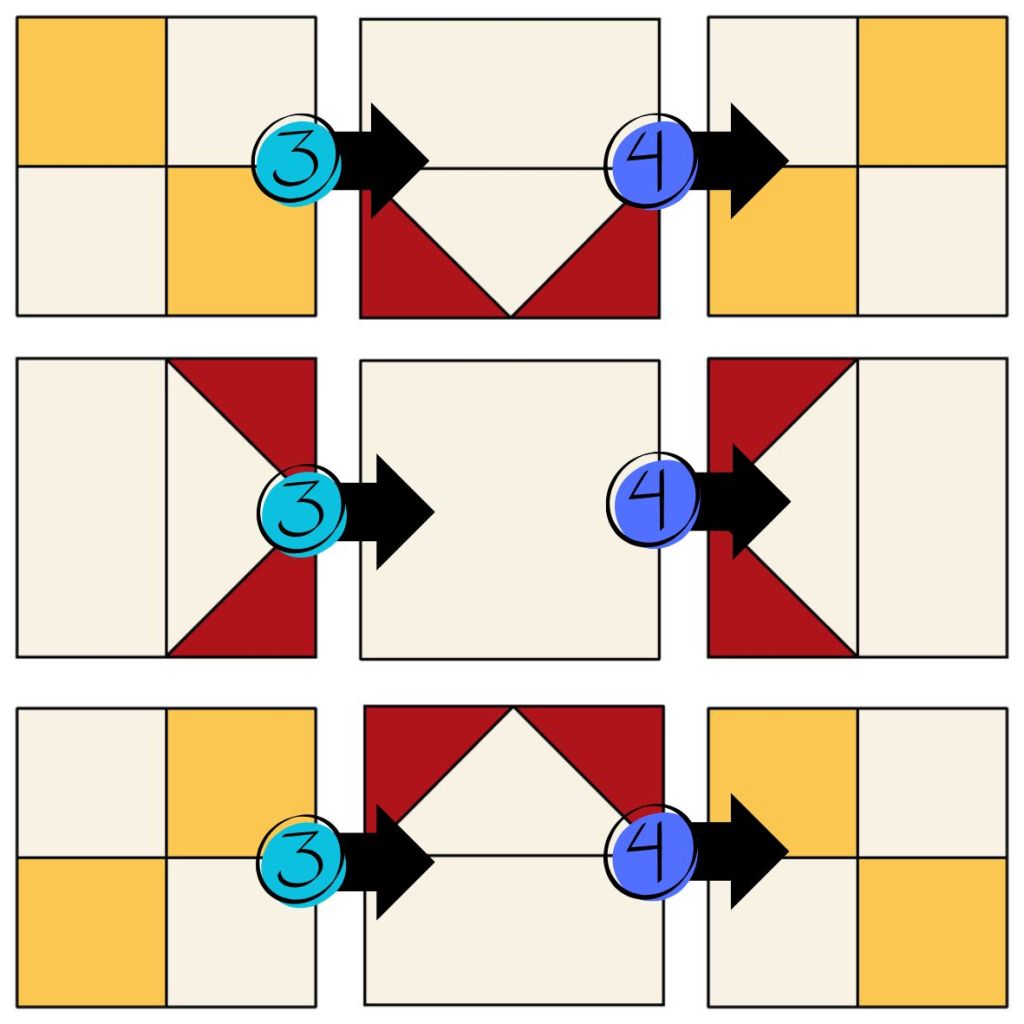 4 – Create 4 Square Patches: Arrange per diagram and sew (4) patch squares