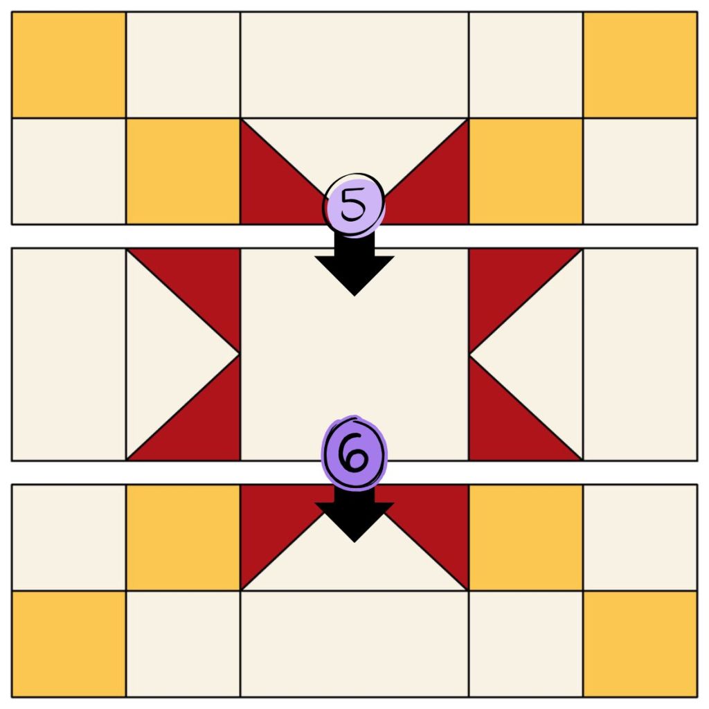 13 – Arrange: Arrange the sewn blocks as shown in the diagram below. Sew the blocks together as shown in the diagram.